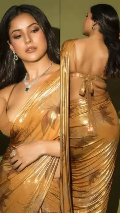 Shehnaaz Gill ने ब्राउन साड़ी पहन दिखाया कर्वी फिगर, फ्लॉन्ट किया बैकलेस ब्लाउज
